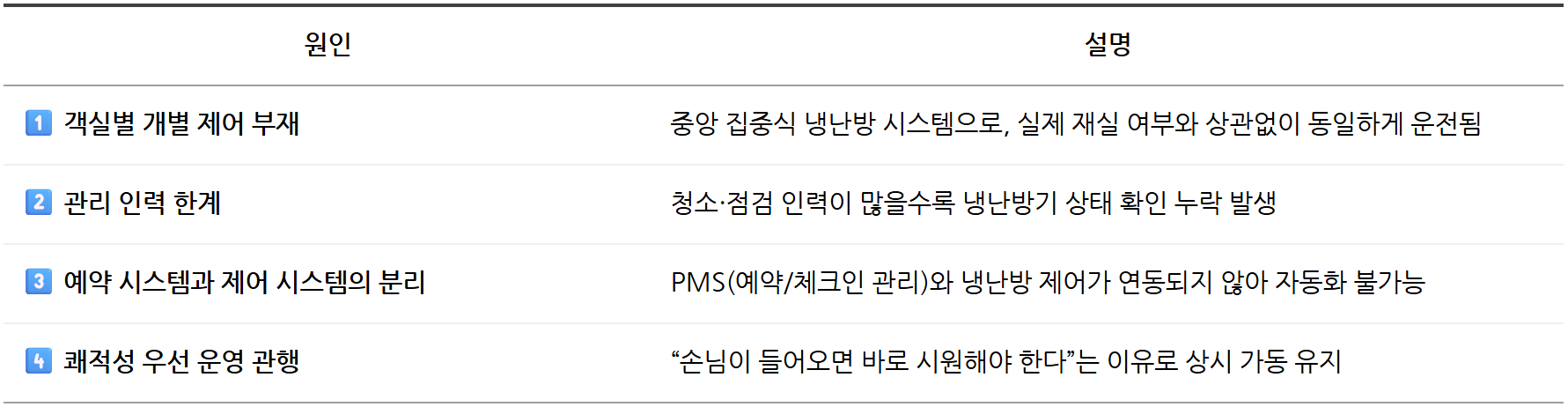 “하우스키핑이 끝나면 냉방기를 꺼야 하는데, 누락되는 경우가 많다.”